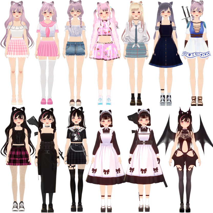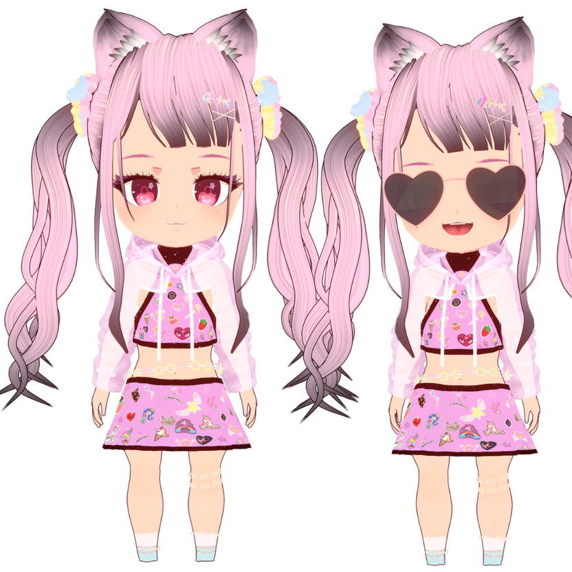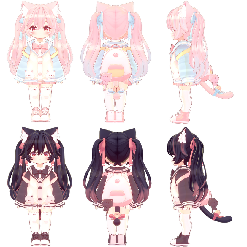 These are the models that I use personally. Base Model is bought from Ququ. Modified/Edited it to my own liking. Such as its dynamic bones, jiggle physics, animated ears, blendshapes, expressions, shaders, motions and many more. Chibi Model is from Sisters!